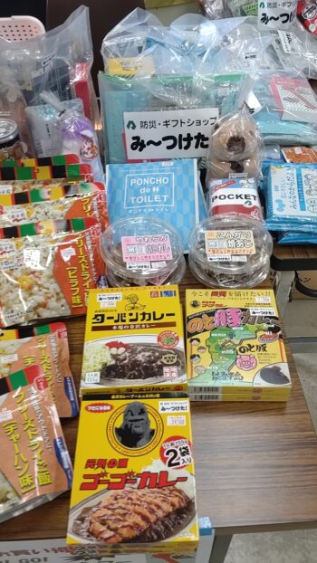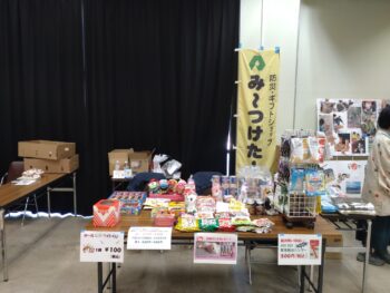 有限会社 旭ケミカルは販売コーナーの一部にて防災食・防災用品を中心とした物品を取扱わせていただきました。また県外から取り寄せてある珍しいギフト商品も販売致しました。